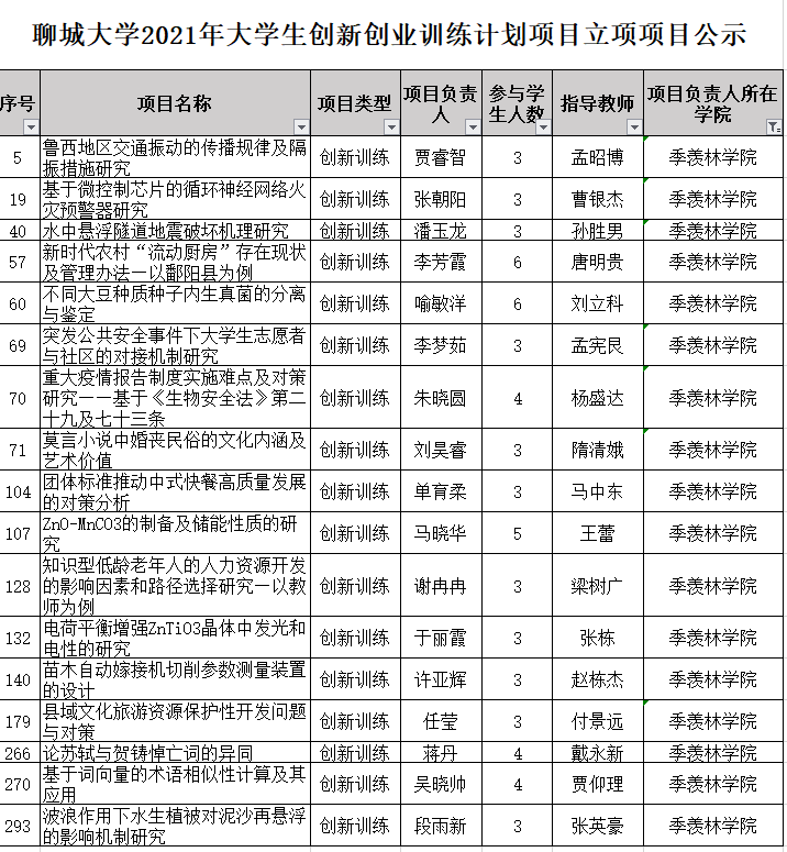 2021年,季羡林学院2019级学子通过导师精心指导,共申报聊城大学21项大学生创新创业训练计划,其中最终入选17项,占比81%。