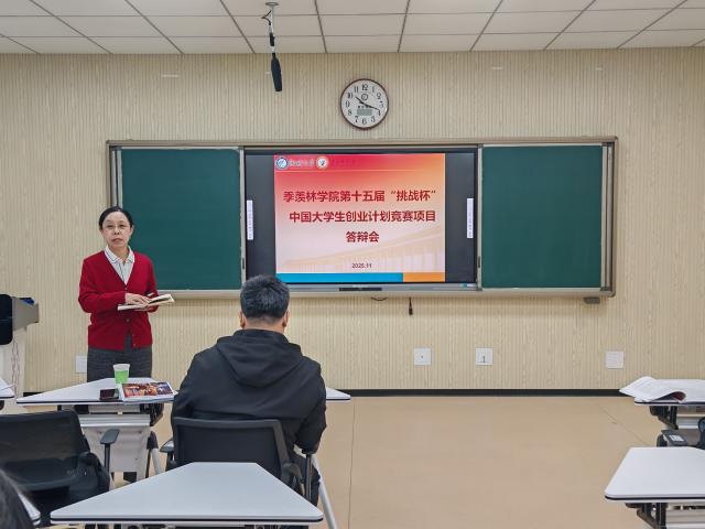 11月29日,季羡林学院举办了第十五届“挑战杯”中国大学生创业计划竞赛答辩评审会。本次答辩评审会特邀机械与汽车工程学院教授、工程训练中心主任郭安福、文学院团委书记石勇、农业与生物学院副教授华学文组成评审专家组,答辩会由季羡林学院副院长王桂清主持,8个项目组全体成员参与了本次答辩。